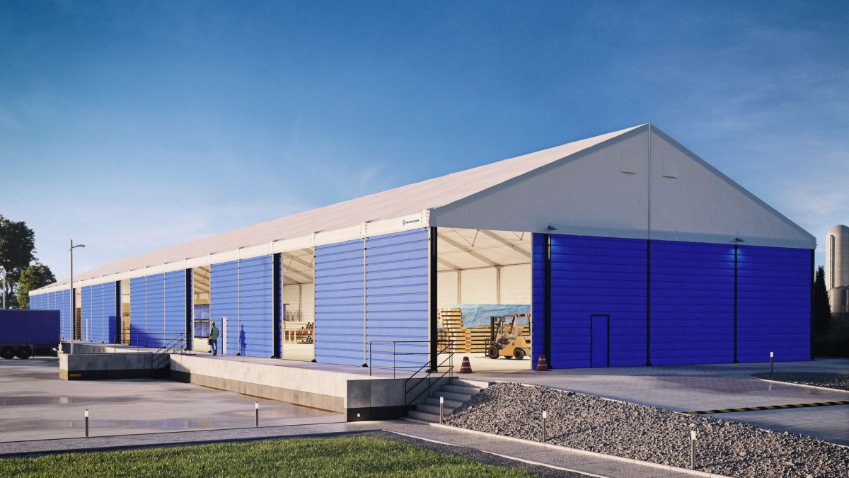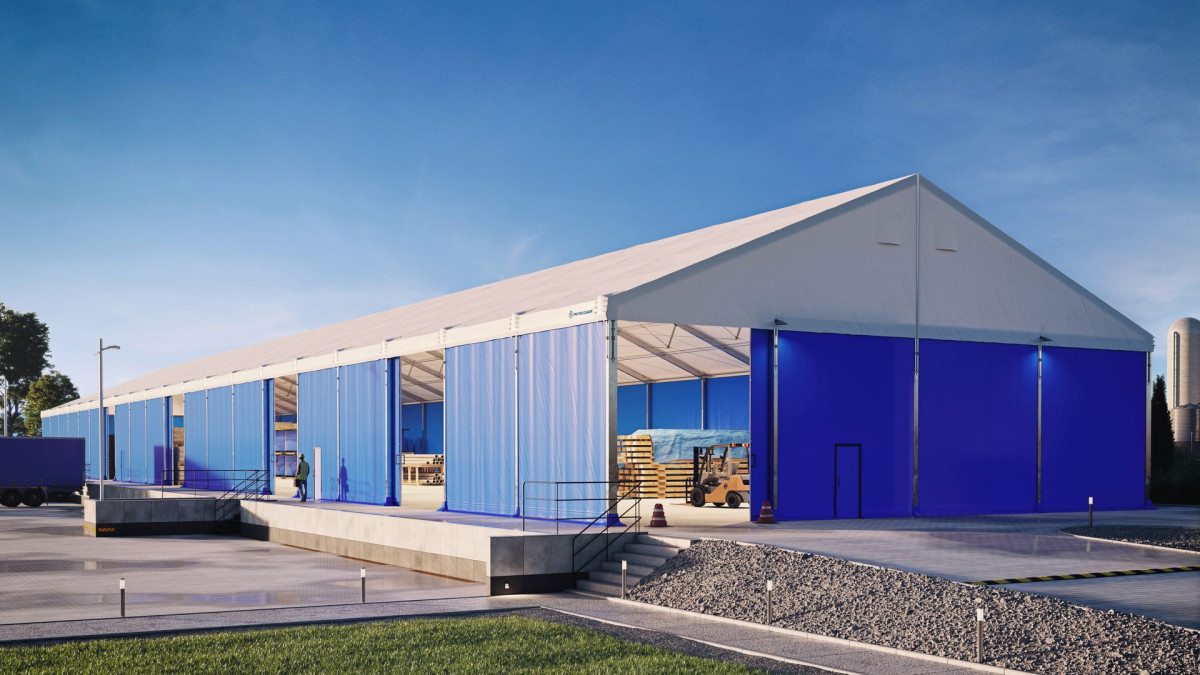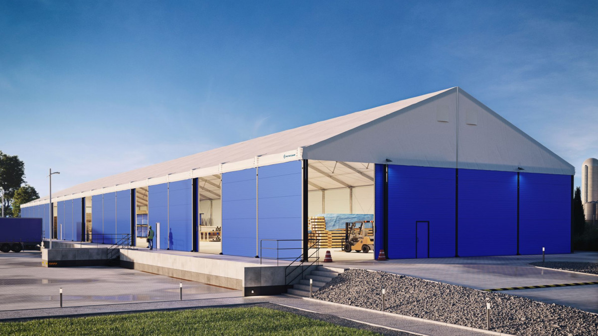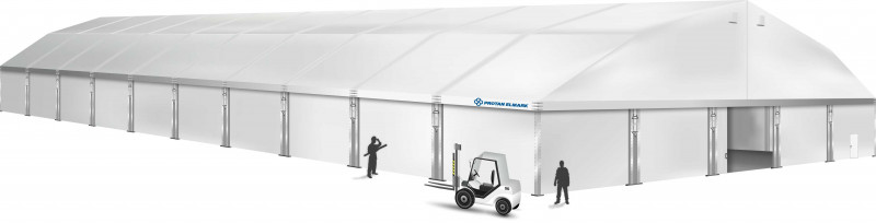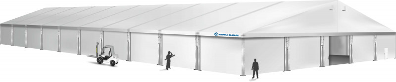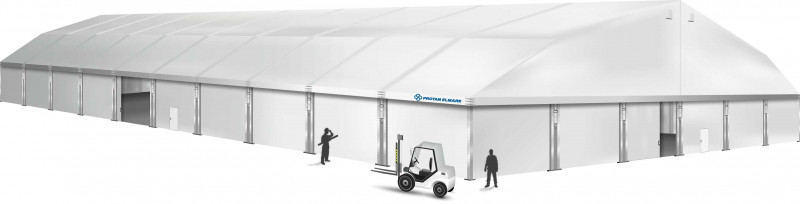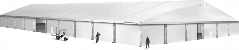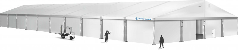 Šatorske hale su pogodne kao skladišta tijekom cijele godine. Izdržljivi PVC materijali štite unutrašnjost od kiše, snijega i vjetra. Po zimi se hale mogu zagrijavati. Kako bi se osigurala puna sigurnost skladištenja robe, stranice možete dodatno ojačati pomoću tvrdih limova ili sendvič panela. To ne samo da povećava otpornost na vremenske uvjete, nego također pruža zaštitu od provala.